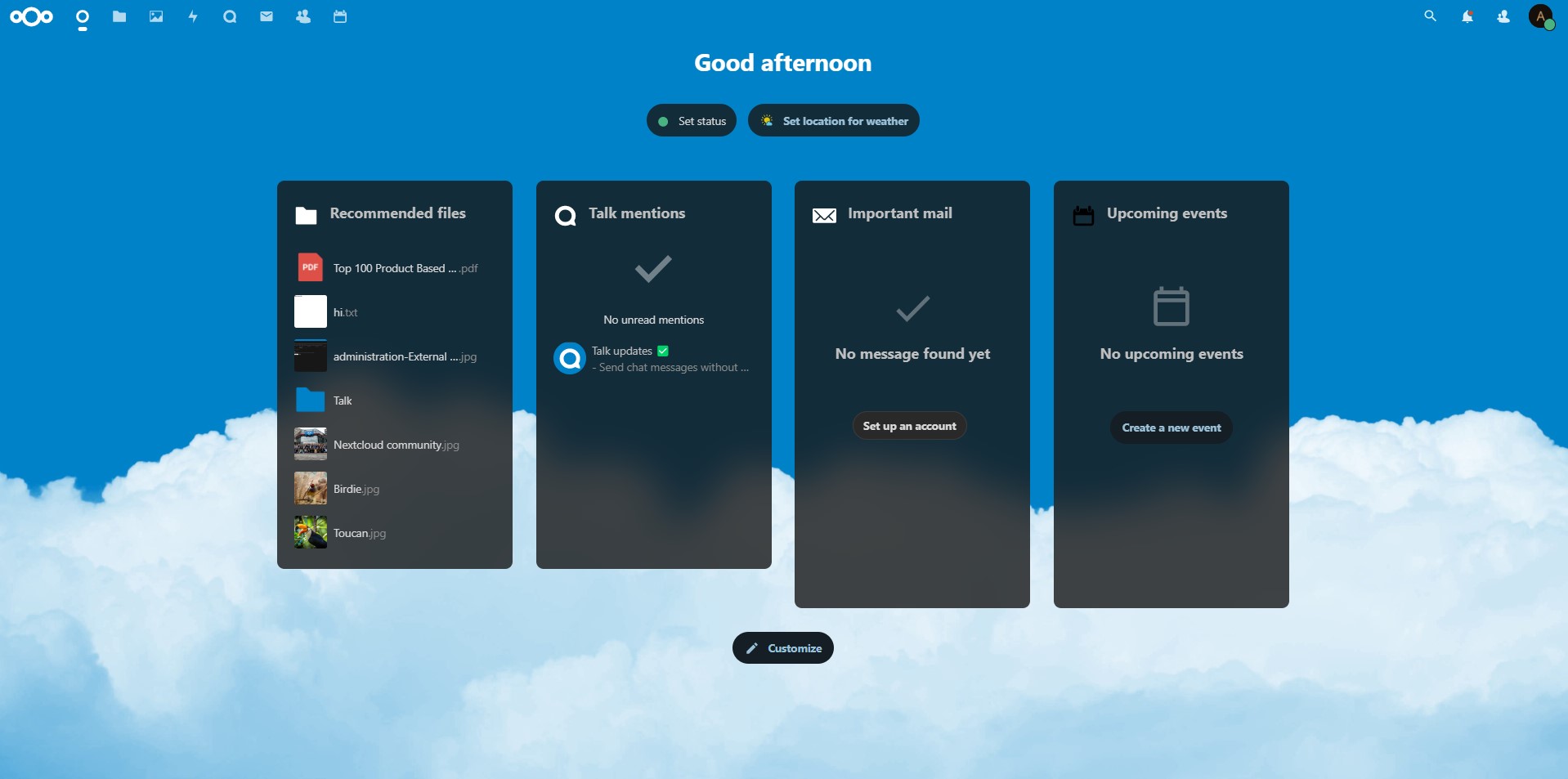 | ۲۷ آذر ۱۴۰۱، ساعت ۱۵:۱۷ | Nextcloud-dashboard.jpg (پرونده) | ۱۲۶ کیلوبایت | ۱ | ||