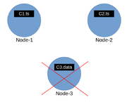 شکل ۲- وضعیت سه نسخه ی شیء بعد از حذف شیء و وقوع خرابی در گره ۳.png
