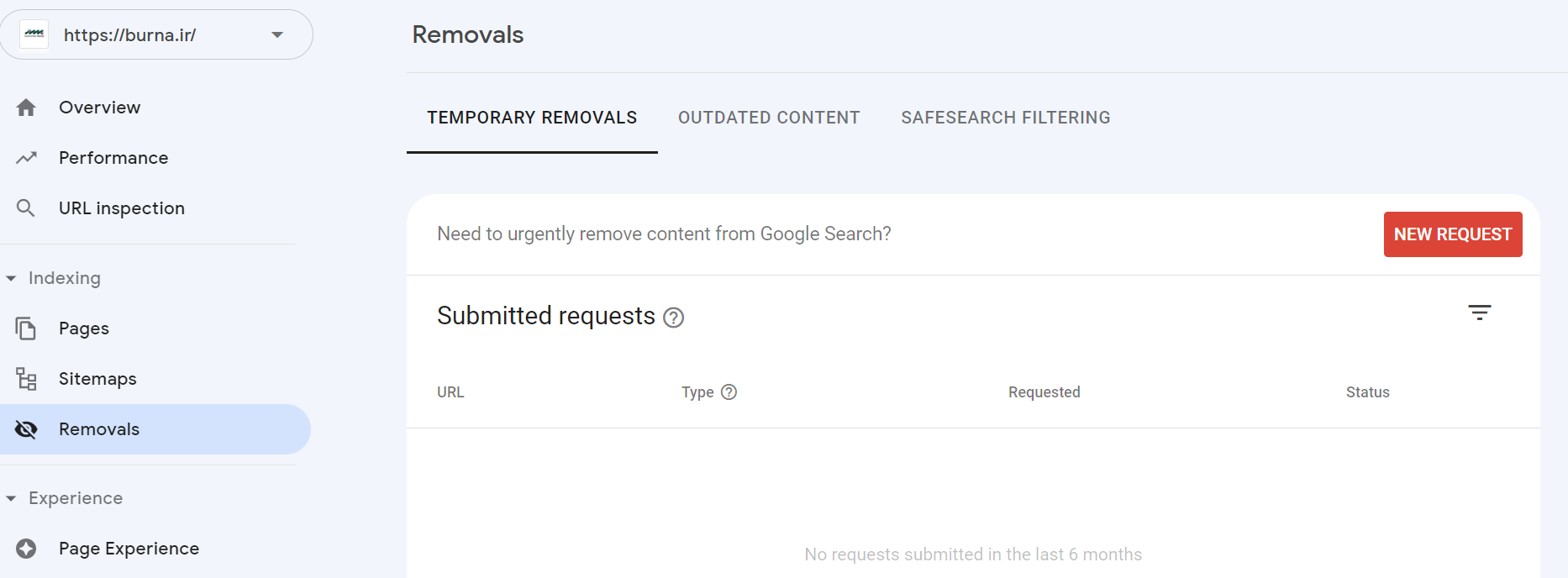 | ۳۰ بهمن ۱۴۰۱، ساعت ۱۰:۱۹ | Removals in google search console.png (پرونده) | ۸۰ کیلوبایت | ۱ | ||