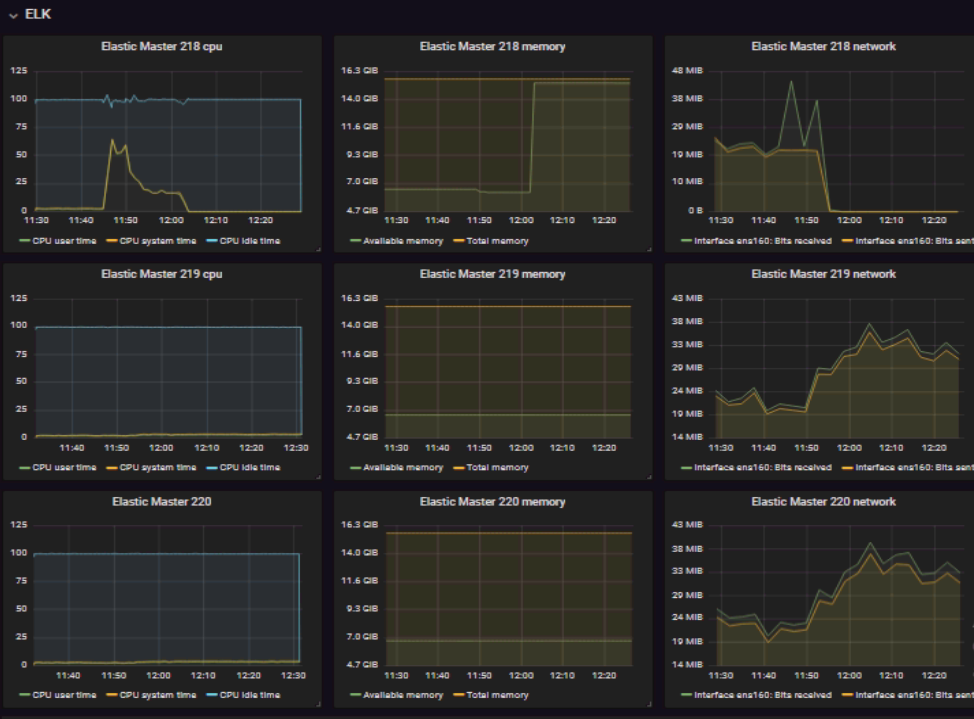 شکل ۲۸- نمودارهای ایجاد شده در گرافانا جهت مانیتورینگ نودهای Master کلاستر elastic search.png