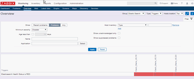 شکل ۱۱- گزارش zabbix مبنی بر وضعیت قرمز کلاسترelastic search.png