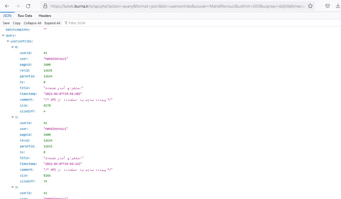 - (دریافت) GetCountChangesPagesOfNamespaces.jpg . . ۷۴۲ در ۲۴۵ . . ۲۲ کیلوبایت . . مهدی نوروزی . . ۲۰ اردیبهشت ۱۴۰۱، ساعت ۲۰:۰۲