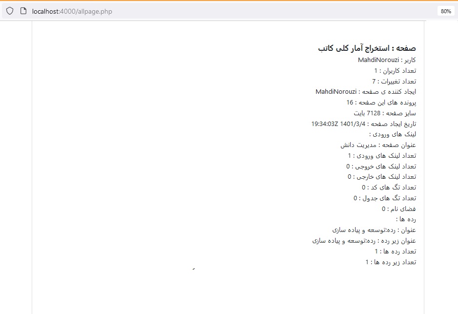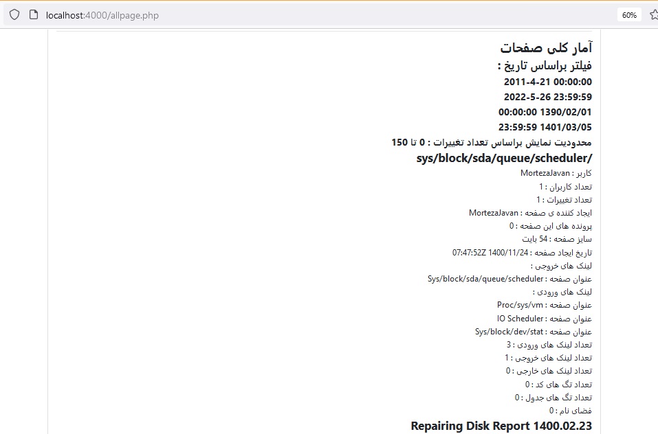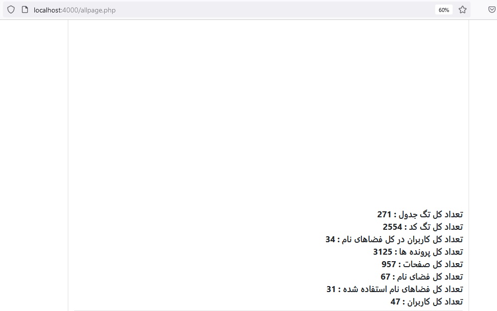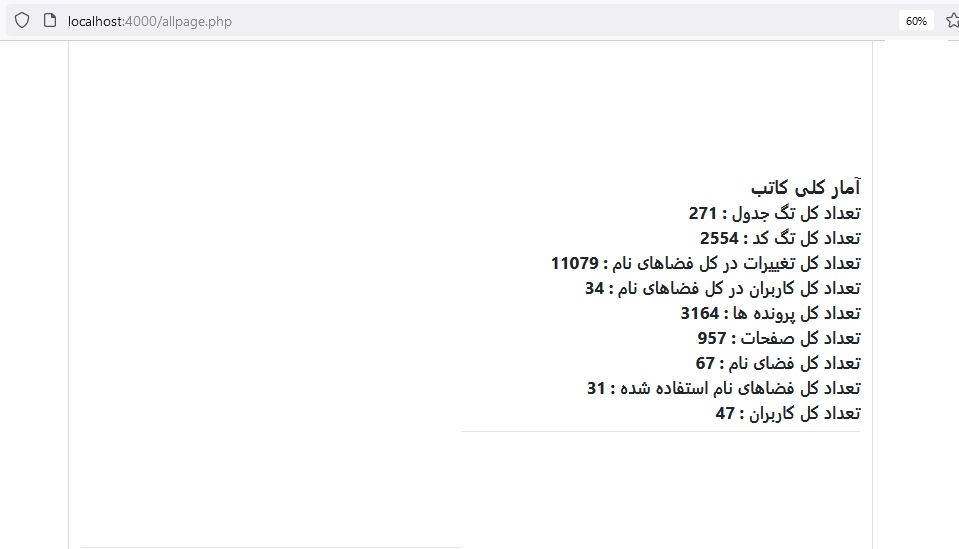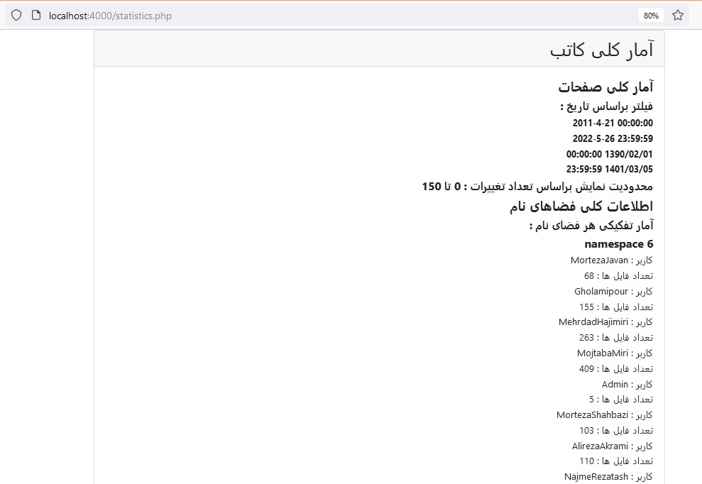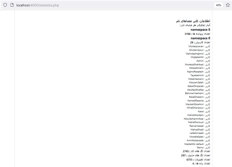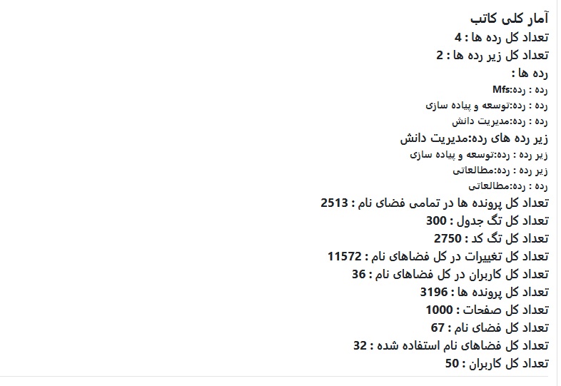 | ۴ خرداد ۱۴۰۱، ساعت ۱۹:۱۱ | آمار کلی صفحات کاتب.jpg (پرونده) | ۵۶ کیلوبایت | ۱ | ||