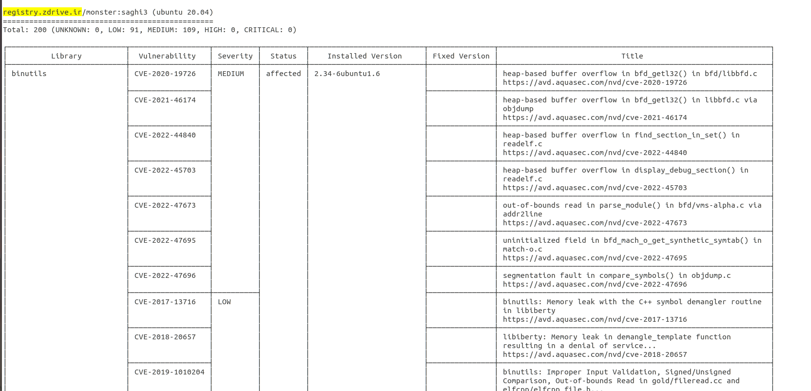 | ۳ آبان ۱۴۰۲، ساعت ۱۴:۲۹ | Trivy-output.png (پرونده) | ۱۹۱ کیلوبایت | ۱ | ||