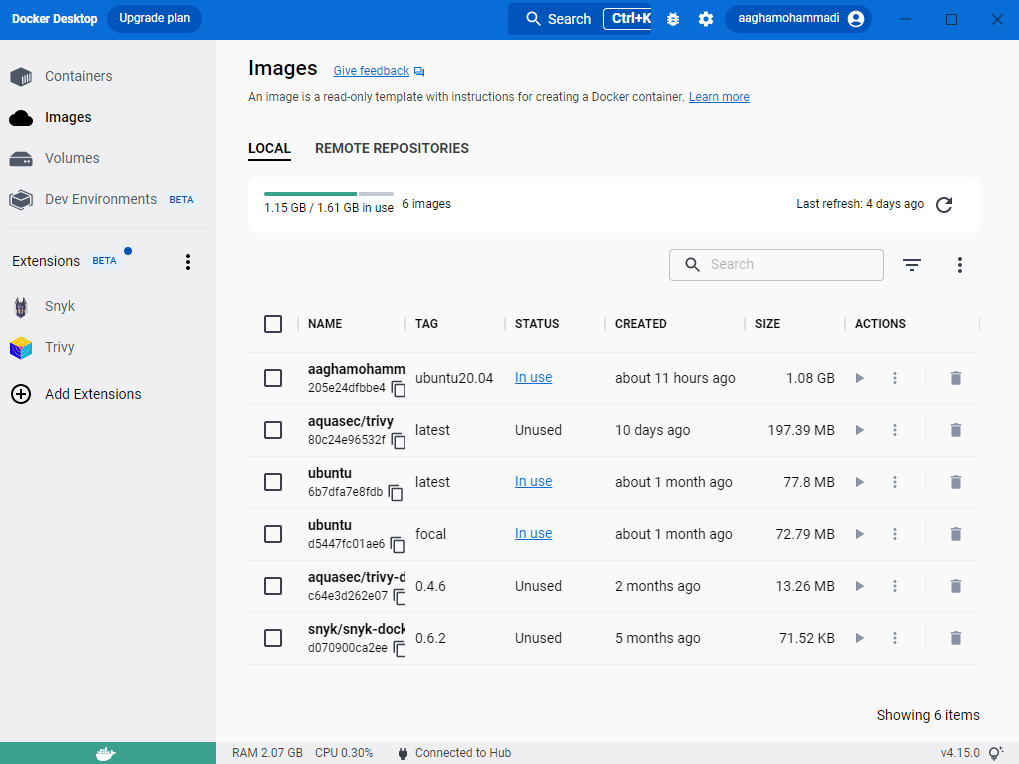 | ۲۷ دی ۱۴۰۱، ساعت ۰۹:۲۲ | تصویری از docker desktop همراه با extensions.png (پرونده) | ۷۷ کیلوبایت | ۱ | ||